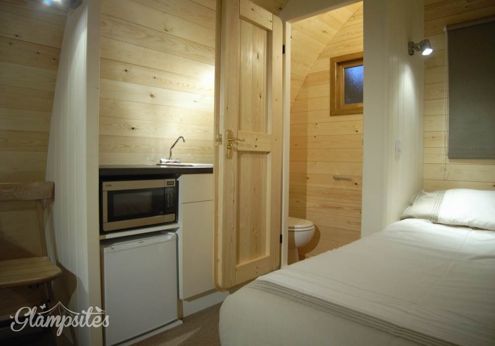 We stayed in a mega pod so that we had our own loo. Everything was clean and tidy and all the essentials were provided. We ate out but there was a microwave if we had wanted a meal at the hut.The little fridge was great but noisy...had to be turned off at night as I can't sleep when there's noise in the same room. They even provided washing up liquid!... little touches that made the difference. Aside from the mix up with where I was to park (we needed to park 2cars as I met a friend) it was a flawless stay and provided great memories.