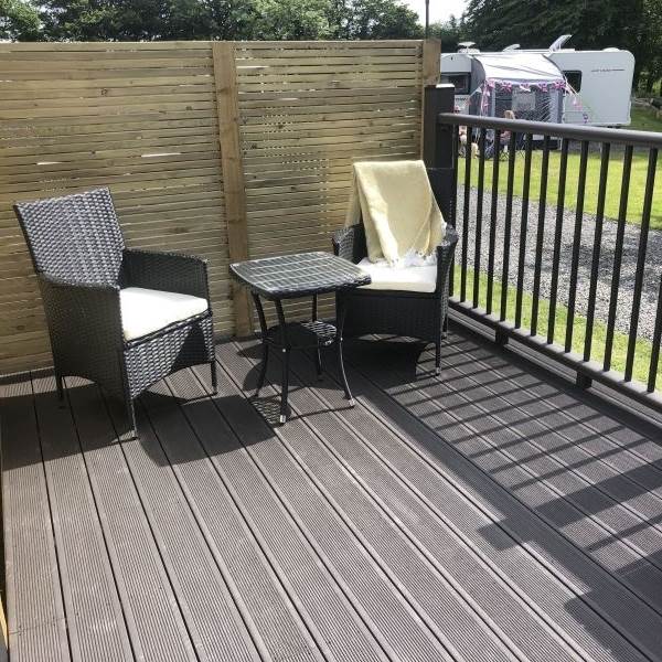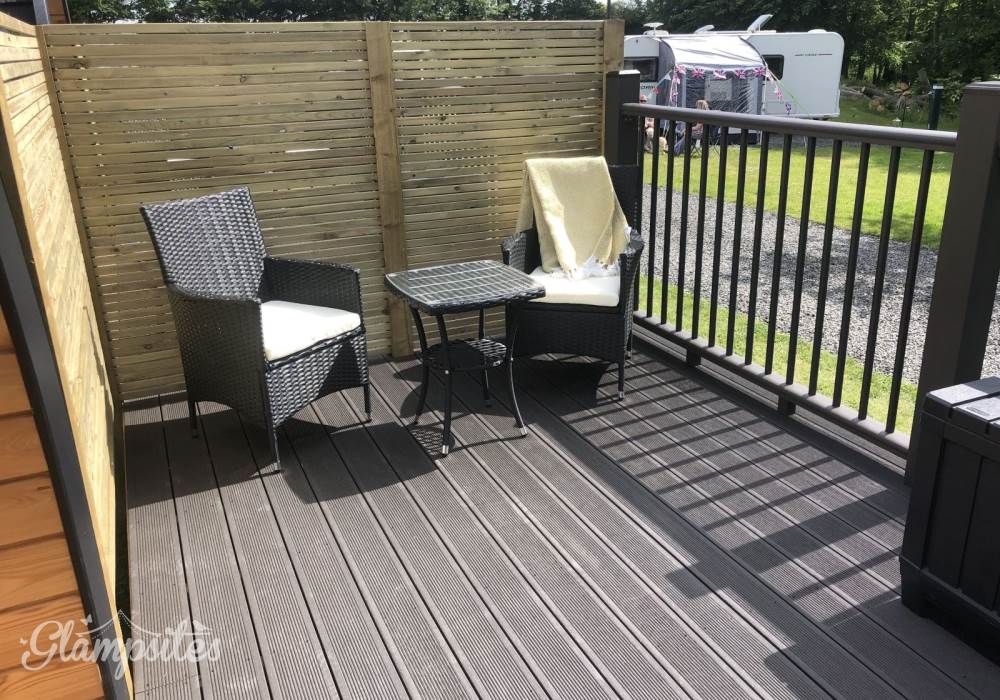 The terrace at the front comes with seating, a storage box, fire pit and barbeque.