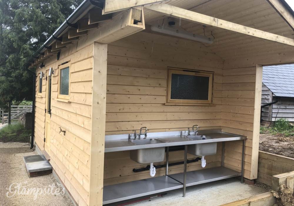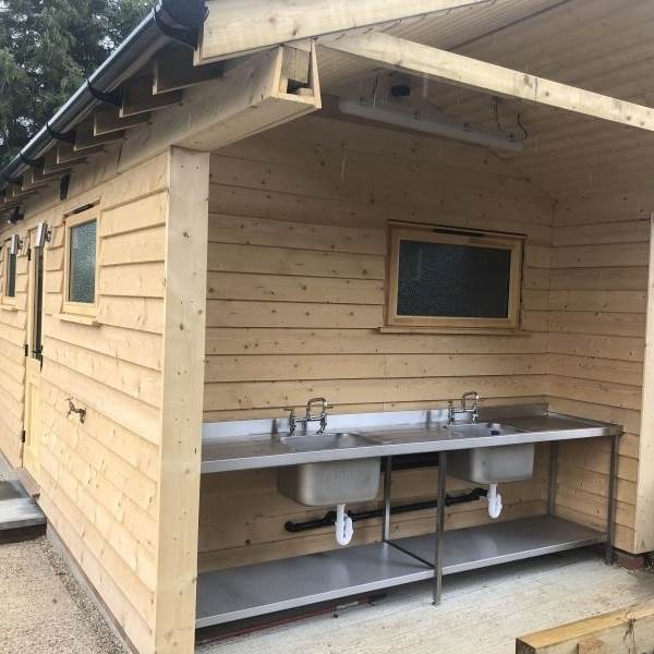 Separate Toilet and Shower Block with outside wash-up area has a constant supply of hot water.