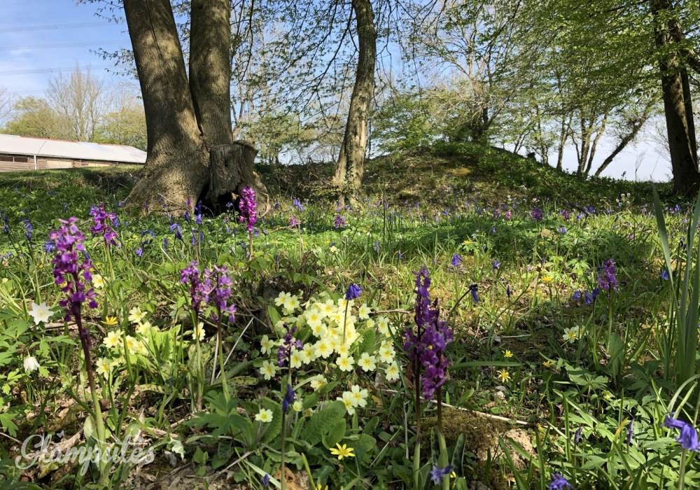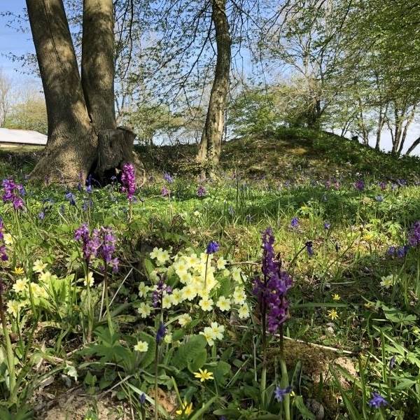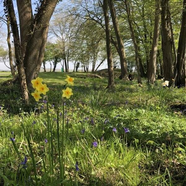 The site is level and surrounded by a well-managed copse adjoining the road with wildflowers and resplendent with bluebells in the Spring.