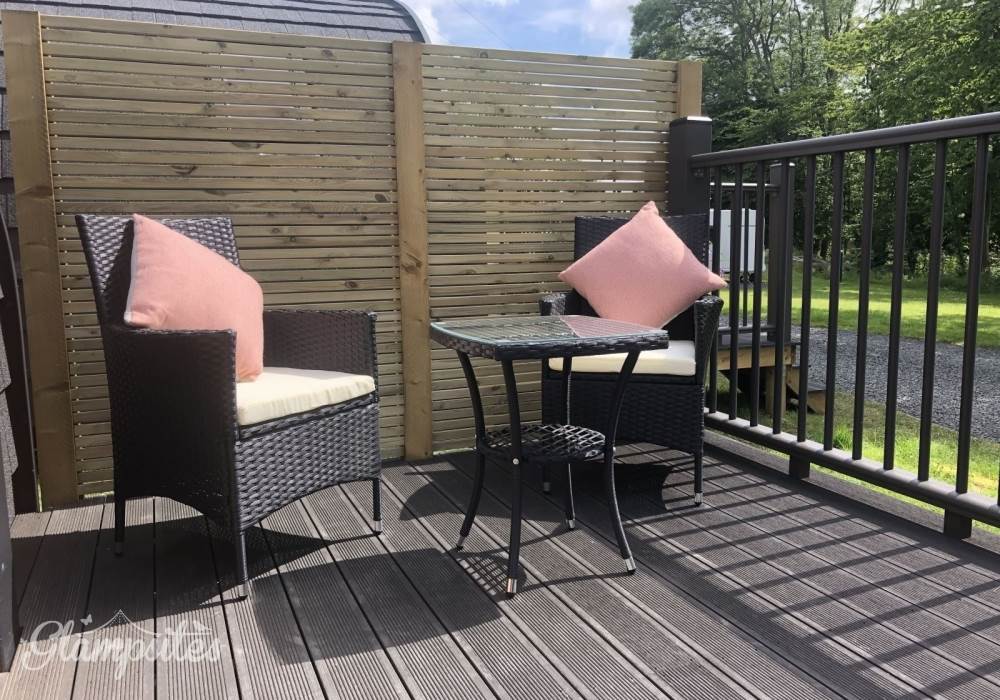 Table and Chairs are provided along with place mats, crockery and cutlery.