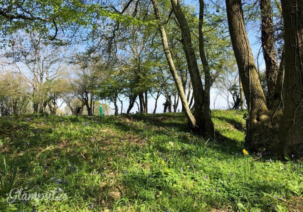 The site is level and surrounded by a well-managed copse adjoining the road with wildflowers and resplendent with bluebells in the Spring.