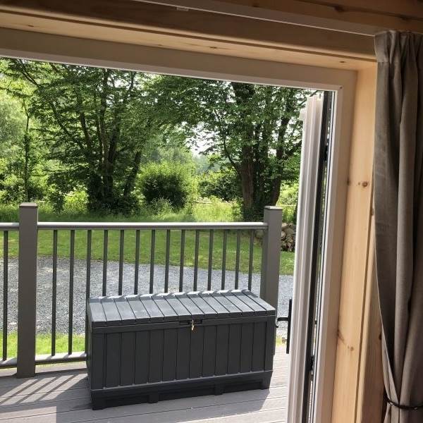 The terrace at the front comes with seating, a storage box, fire pit and barbeque.