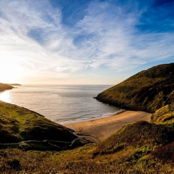 There is a large raised deck area at the front of the lodge with stunning views across the coastal hills, where better to sit with a glass of wine and a book on a summer afternoon. Just outside is a picnic table, fire pit and BBQ for campfire cooking or as evening settles sitting by a crackling log fire whilst gazing at the stars across the immense West Wales night sky. Each lodge has a private freshwater wood-fired hot tub. The area is famed for outdoor pursuits and is known as the best location to spot dolphins.