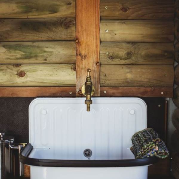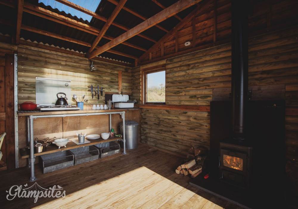 Inside is a full kitchen with gas hob and sink along with everything you should need; cooking utensils, pots, pans, crockery, cutlery glassware and that very important cork screw. Just outside the the cabin is a firepit and BBQ perfect for campfire cooking. Each cabin has an allocated fridge in the shed by the car park.