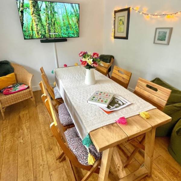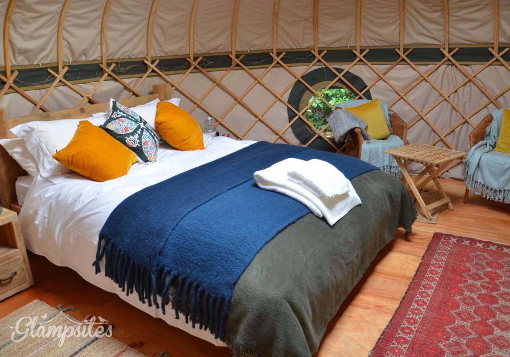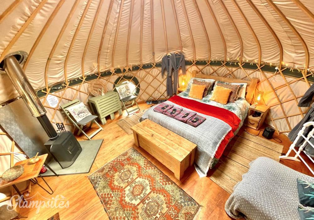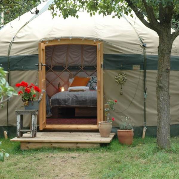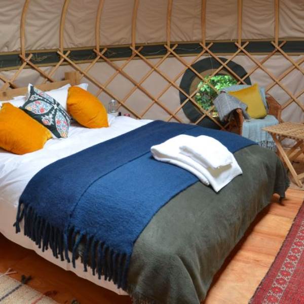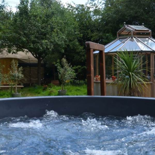 ​Our beautifully handcrafted yurt is a perfect retreat for all seasons; cosy and warm in the cooler months, fresh and airy in the summer. It is ideal for couples, families or four adults. The yurt is in a private site with its own hot tub, kitchen, eco loo and firepit. A luxury private bathroom is a short stroll away.
