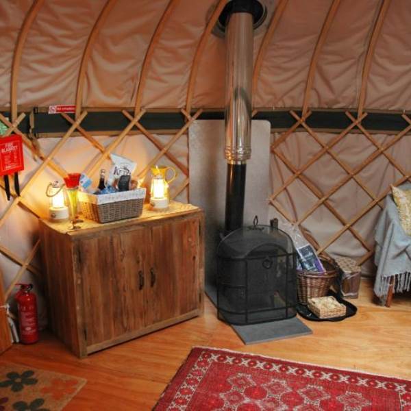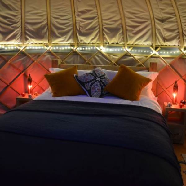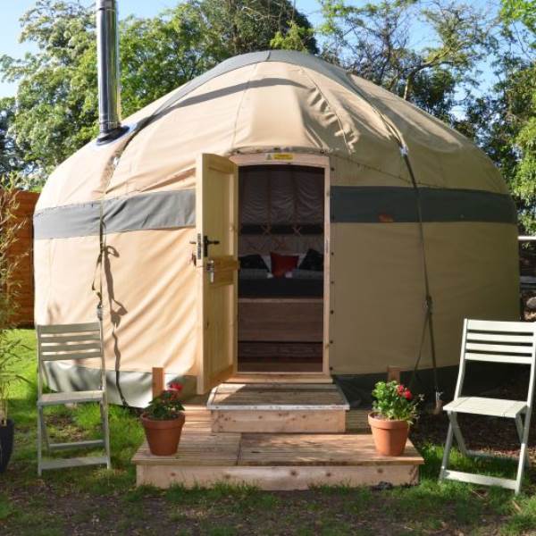 Our beautifully handcrafted yurt is a perfect retreat for all seasons; cosy and warm in the cooler months, fresh and airy in the summer. It is ideal for couples, families or four adults. The yurt is in a private site with its own hot tub, kitchen, eco loo and firepit. A luxury private bathroom is a short stroll away.