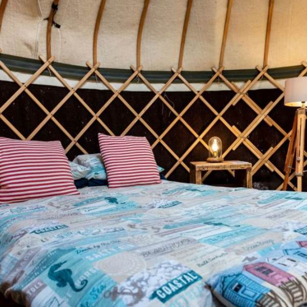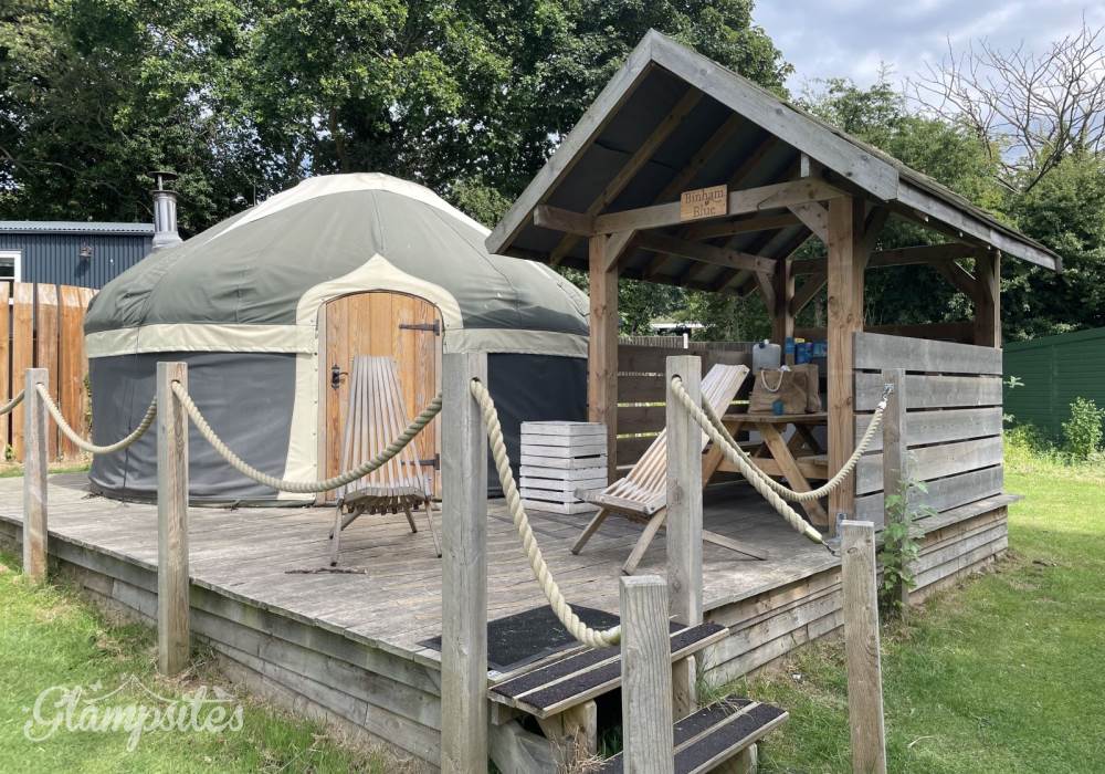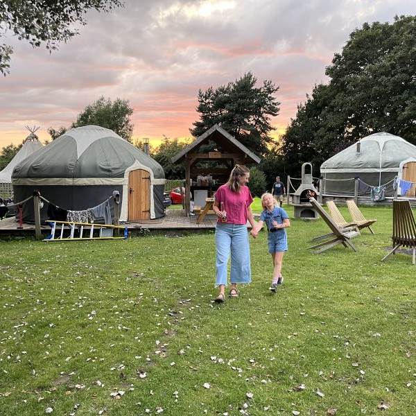 The site itself is in a quiet corner of The Grove garden with easy access to the swimming pool and is a great safe place for kids to play and make friends. The five yurts are huddled around a fire pit, which has a convivial atmospheric feel in the evenings. All yurts are fully kitted out with everything for your stay, you will need to bring towels, slippers and your swimming kit, to enjoy the free onsite pool. You may also want to bring some charcoal for the BBQ. The washing up facilities provided include hot running water, but neither washing up liquid, dish-cloths nor tea towels are provided, so please remember to pack these It’s also worth bringing a torch as there is little light pollution on site. Tucked behind the pool, the yurts have their own washing up area, fridges, stoves, fire pits, BBQ's, as well as benefiting from the short walk through our private woodland path to the award winning Cromer beach.