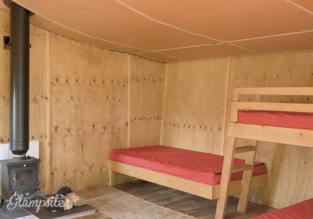 With a PROPER double bed plus two single beds (one a bunk) in our Hoglet Houses plus up-cycled outdoor furniture, solar fairy lights, plates, bowls, cutlery, mugs, glasses, BBQ tools, portable single gas stove, kettle, and cushions and throws not to mention your own Log-burner inside and your own private campfire outside- there’s quite a lot included!