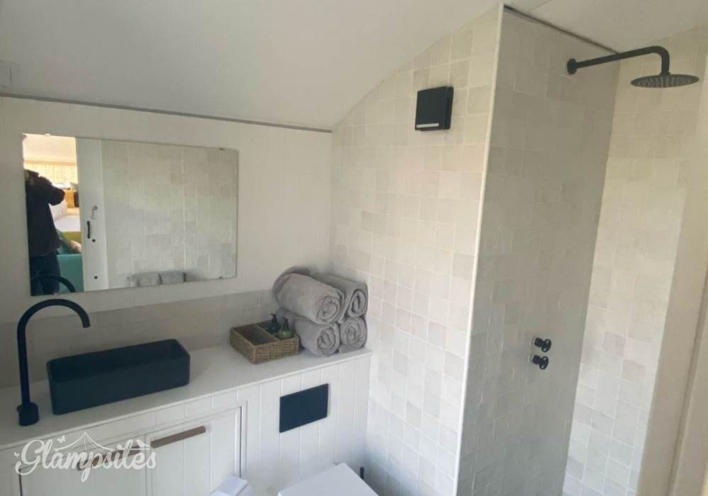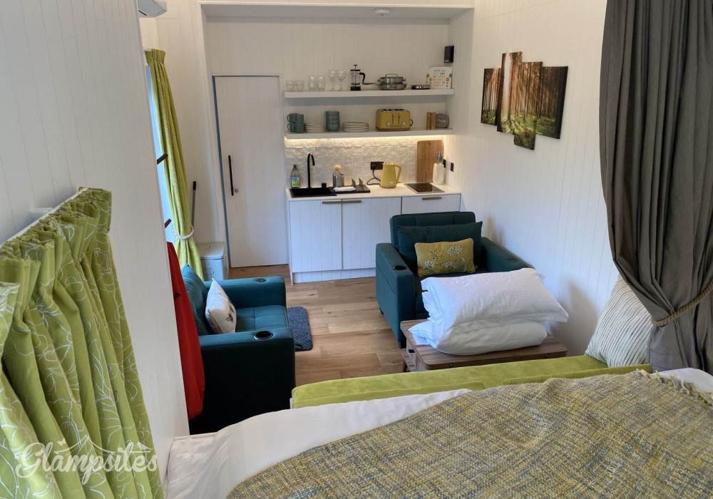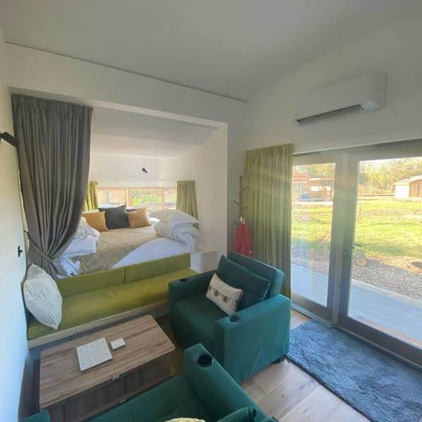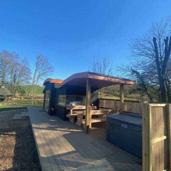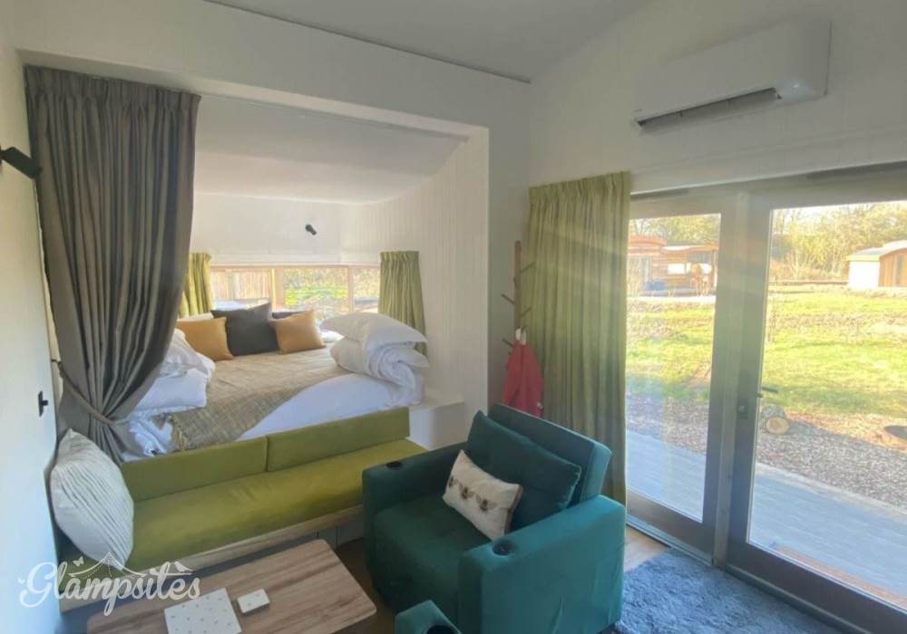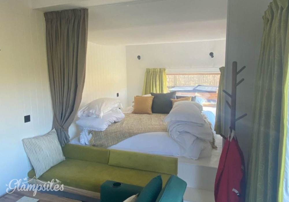 As a unique glamping accommodation, guests can make use of an exclusive air-source heating and air conditioning system. In your large private decking area, guests can access their own hot tub and fire-pit space.