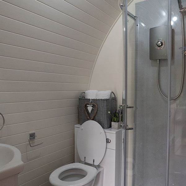 Your own private bathroom awaits including W.C, wash basin and shower. Towels are provided for inside pod use.