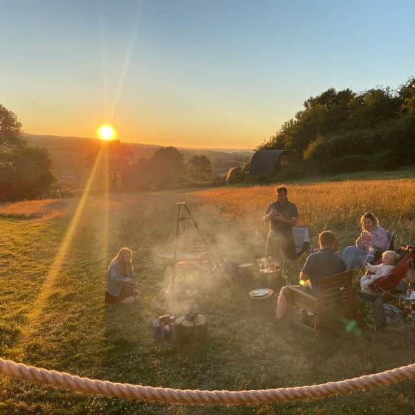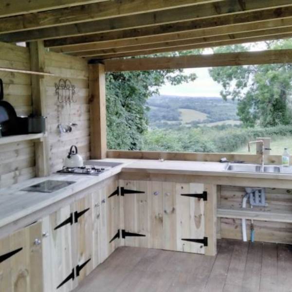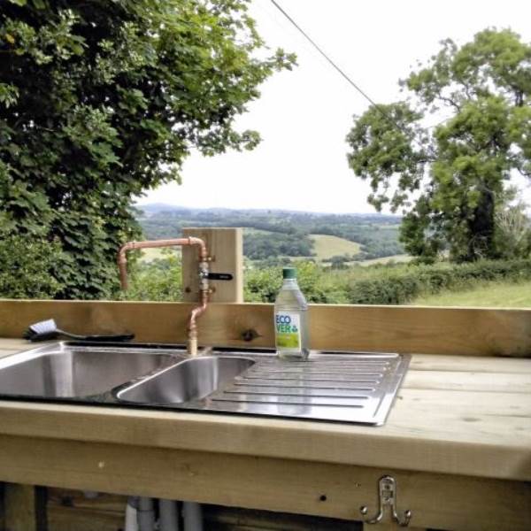 Further down the field is our amazing Field Kitchen with gas hob, sink and food preparation areas, along with a large picnic table and benches.