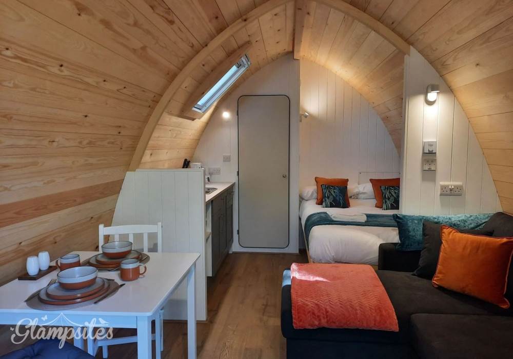 The pod has an oak effect laminate floor, underfloor heating, and sub-zero insulation. Unfortunately this pod does not accept pets and there is a 2 night minimum stay. Check in is from 3pm and should be departed by 11am.