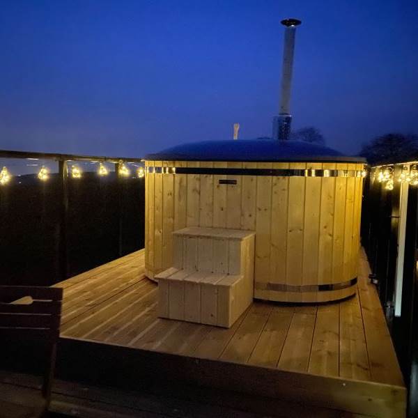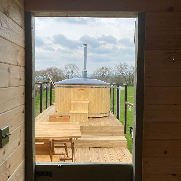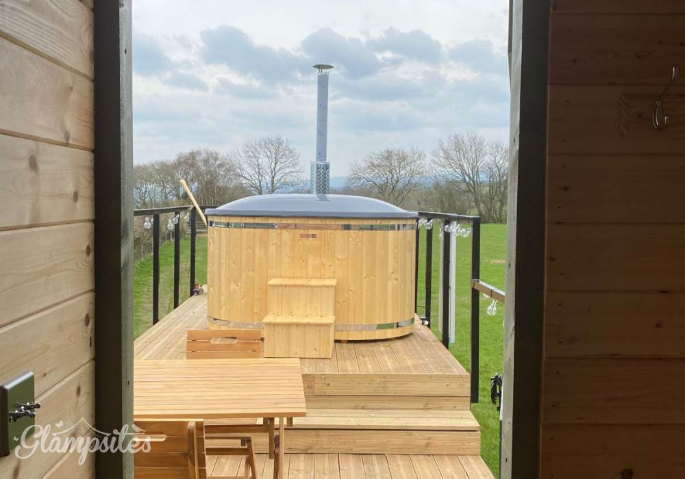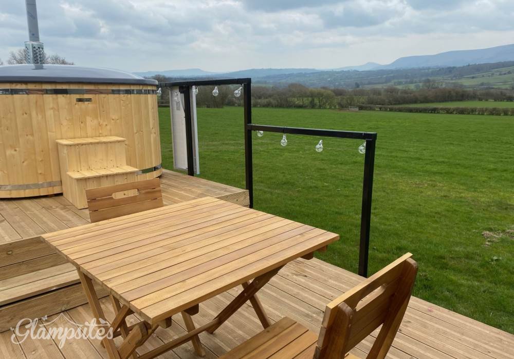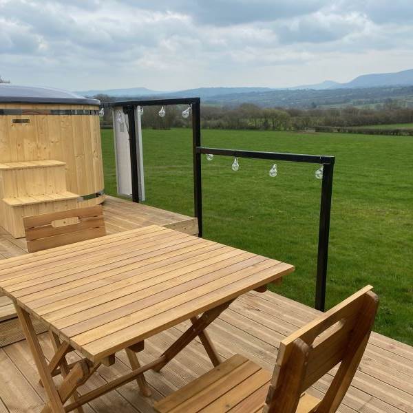 Outside, the balcony enjoys stunning views over the Black Mountains and there is an outdoor seating area and wood fired hot tub. You can enjoy the space in the field, although please note there may be sheep surrounding the field and therefore we ask that dogs are kept on a lead when around the sheep.