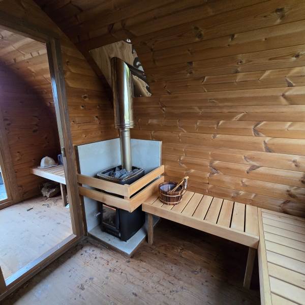 NEW for 2025 - enjoy the new wood fired sauna and cold plunge pool with views across the nearby countryside and fields. Sauna benefits are said to include easing pain, reducing stress, and improving cardiovascular health.