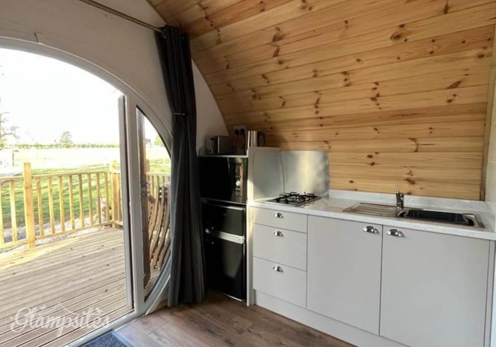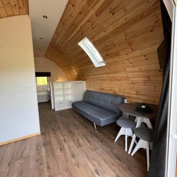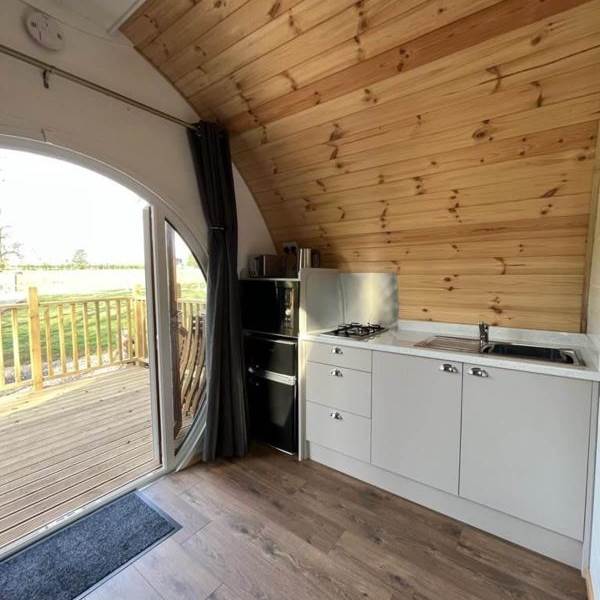 This pod is suitable for 2 adults and up to 3 children and includes full central heating, a private kitchen with fridge, microwave and toaster and a private ensuite bathroom with toilet and shower. This pod also welcomes up to 2 well-behaved pets to join guests (charges apply).