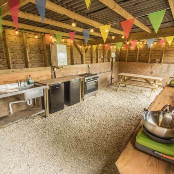 In the kitchen area you get your own work station complete with plates, cups, pots, pans cutlery etc, camping stove, fridge, storage box and picnic table, however there is a conventional communal range cooker and barbeque if the camping stoves do not take your fancy.