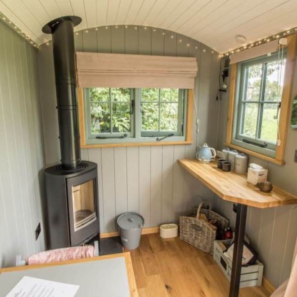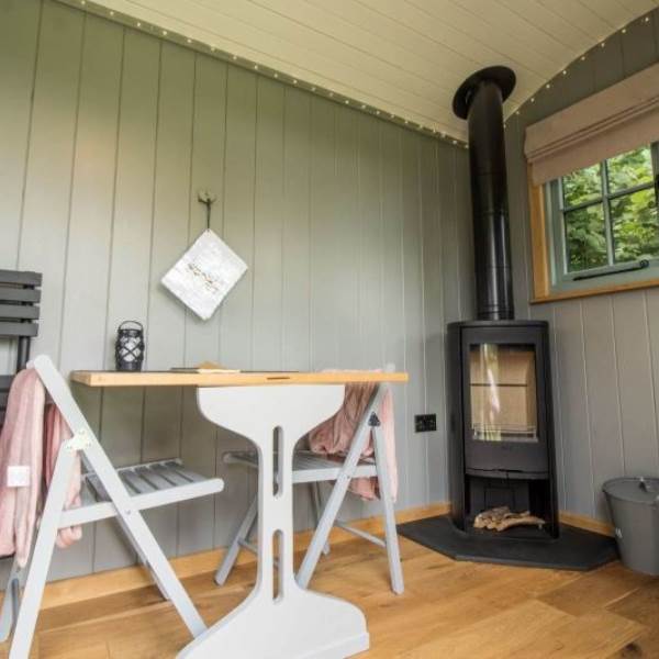 The shepherds hut sleeps 2 with one double bed complete with thick, warm, duvets, pillows and linen. We do have travel cots available for younger guests. Outside your hut there is a lovely area with 2 directors chairs to sit and enjoy a glass of wine as well as a picnic table, your own barbeque and your own fire pit to toast those marshmallows over.