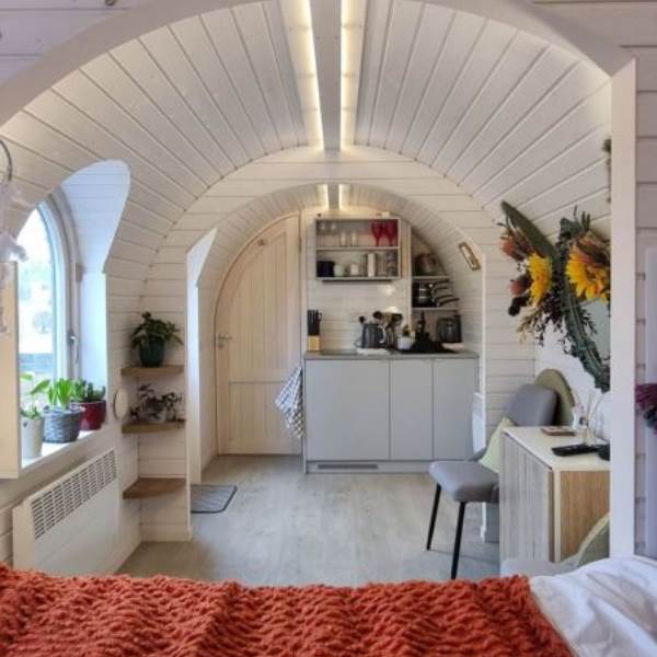 Unlike many glamping pods, our Igluhuts are individually hand built by Iglucraft. Feeling more like a ‘tiny house’ than a pod, guests will find our cabins comfortable, cosy and practical.