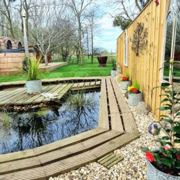 Outside guests may enjoy relaxing on the spacious deck, in the private orchard or by the pond. In the evening perhaps try toasting marshmallows (also provided) whilst sitting around our Star Wars ‘Death Star’ fire pit. You may catch sight of some of the varied nocturnal wildlife including, badgers, bats, owls, hedgehogs and foxes to name but a few and if you’re very lucky – maybe a deer.