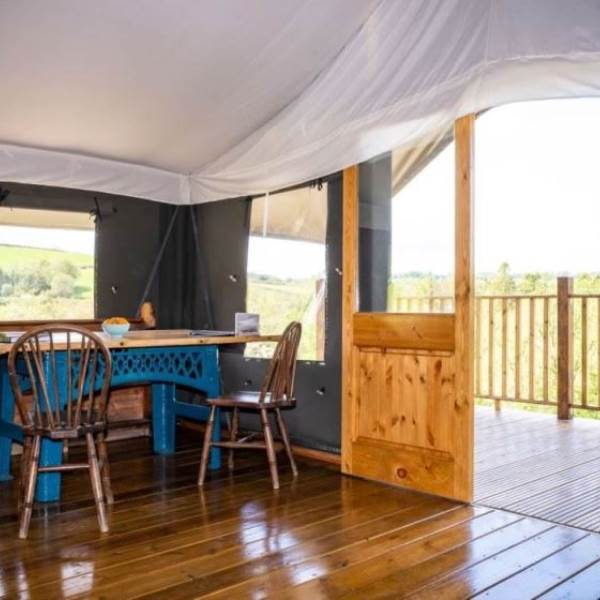 Enfys is one of our gorgeous luxury safari tents and is completely accessible for guests that may require further assistance and space. This luxury tent can sleep six in proper beds with luxury linen (linen and towels all included). Dogs are welcome too so guests can bring the whole family with them!