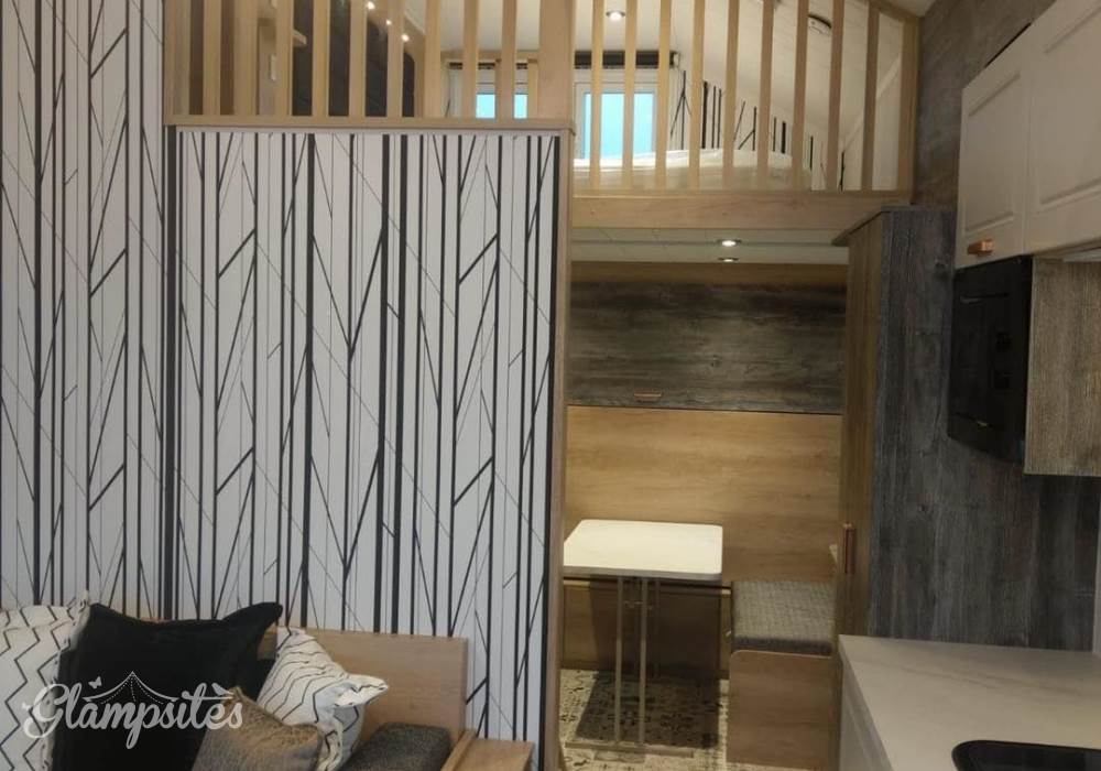 Each of our glamping pods can host up to six guests on two pull out double beds and 2 single beds. Each pod comes equipped with a modern and open living area and a well designed kitchenette that benefits from having a full oven and microwave. Guests can also make use of the quality shower room included within these accommodations.