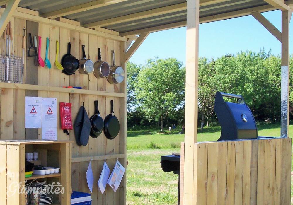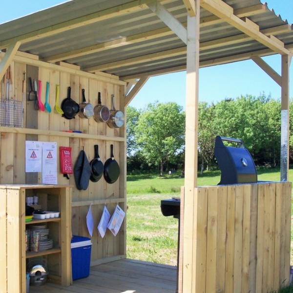 Outside of your tent you will find your own private ecotoilet, outdoor undercover kitchen equipped with gas barbecue, cool box, crockery, cutlery and kitchen utensils, and a picnic table. Also, your own upcycled fire pit which is great for toasting marshmallows & wood stove. Just across the field is your private shower room equipped with hot gas shower, mirror and plenty of room for your toothbrush!