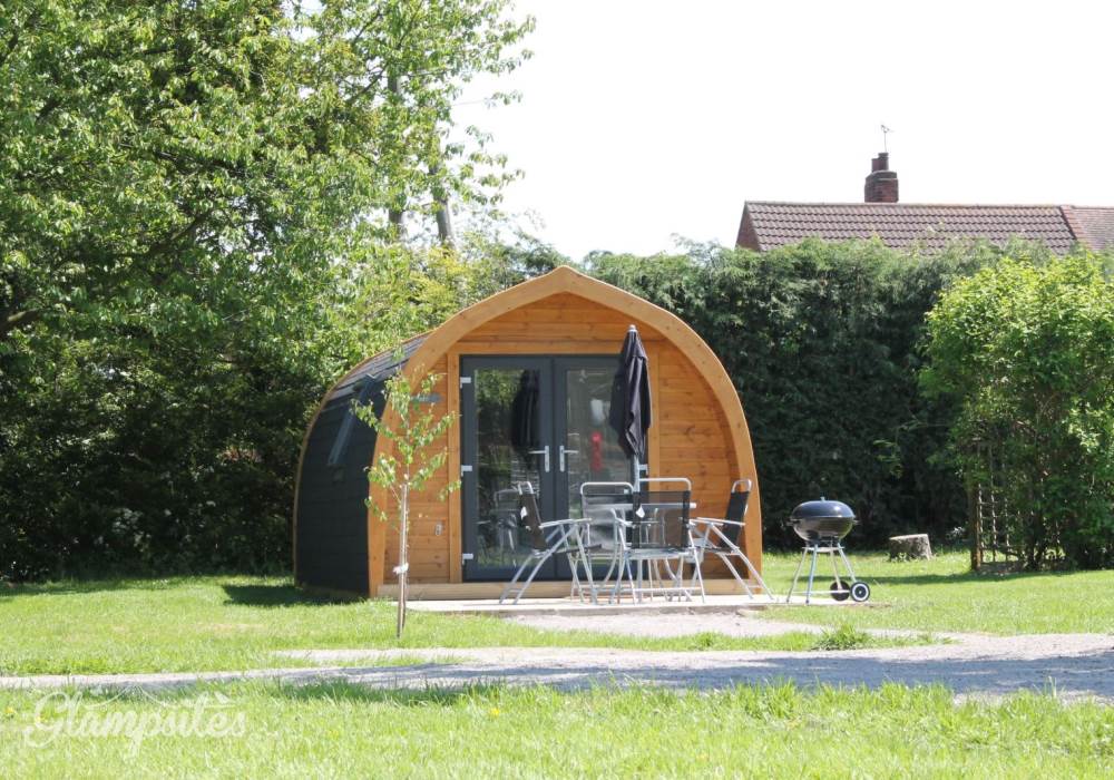 The pods are situated in half an acre of orchard space with a hedge to the rear and lovely views to the front, the only noise heard is some village traffic, the wildlife and the cows from the farm.