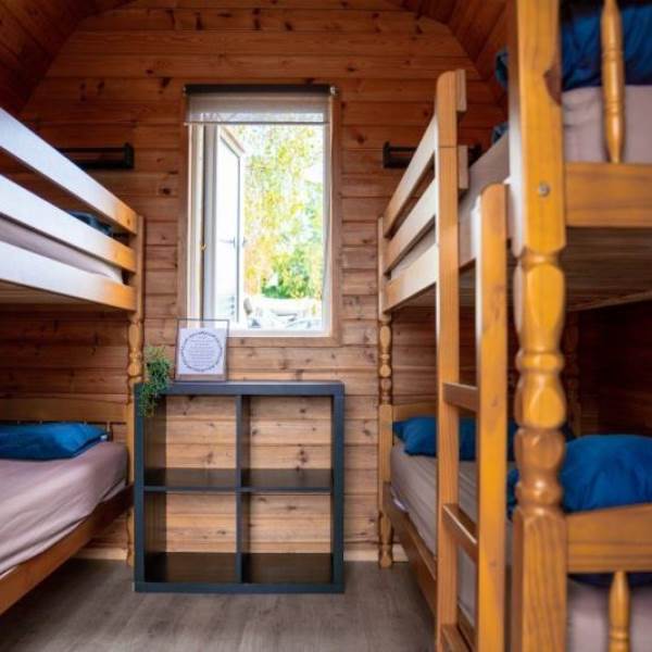 Each pod has its own heating and can sleep up to four adults. There is a toilet & shower block facility located nearby and all the pods are lockable. All you need to bring is a sleeping bag and pillow.