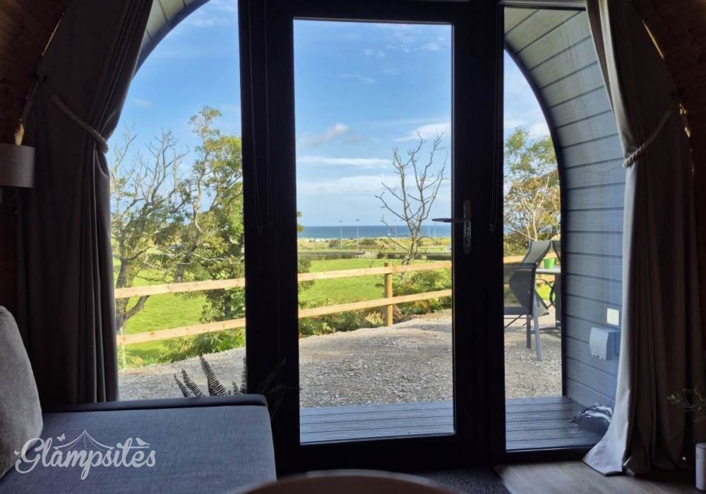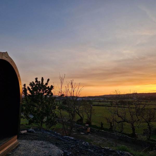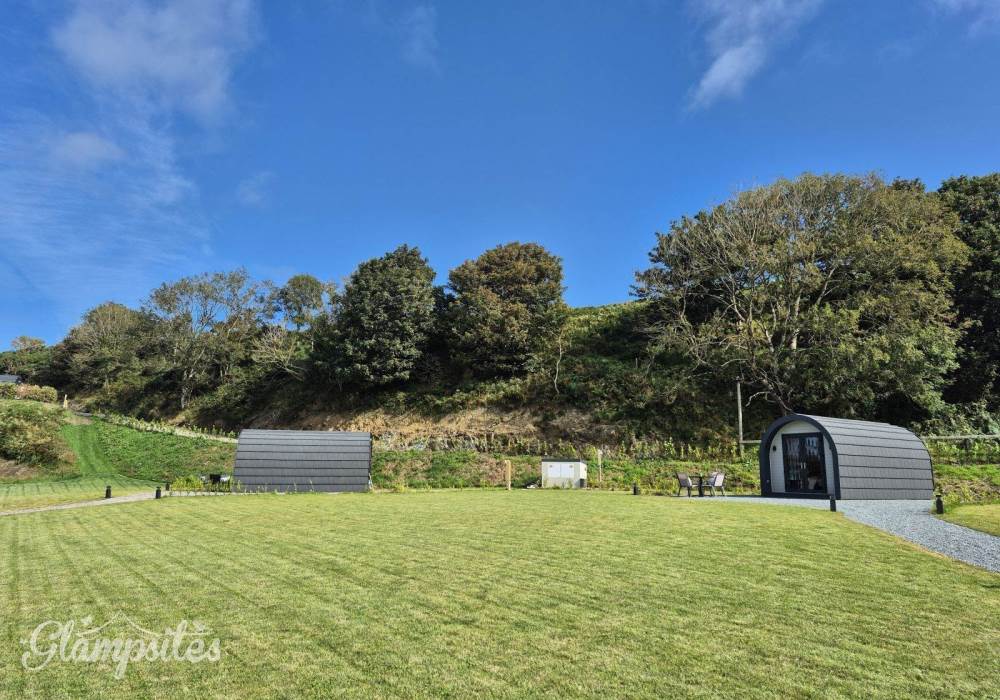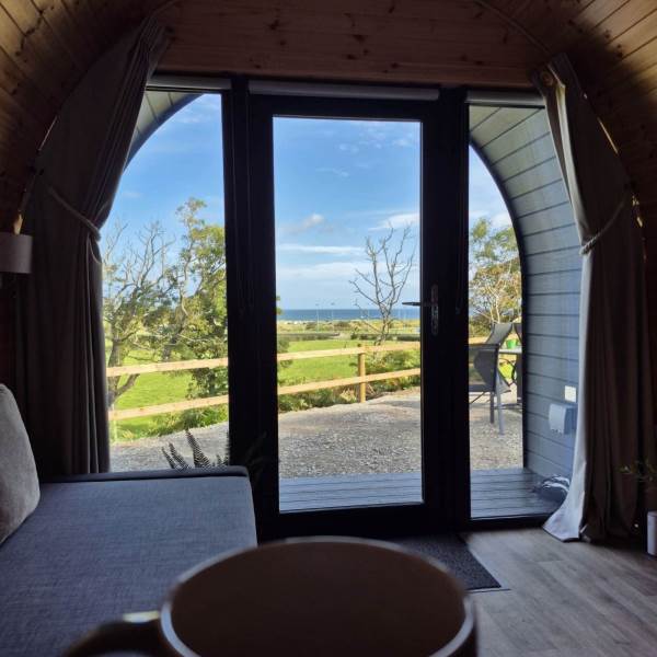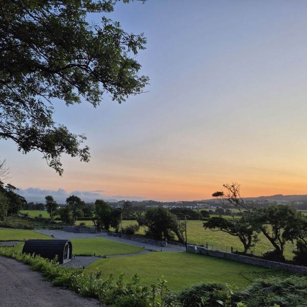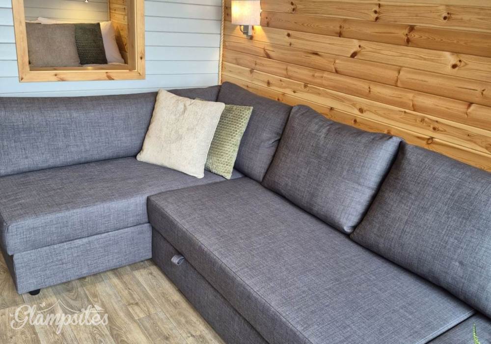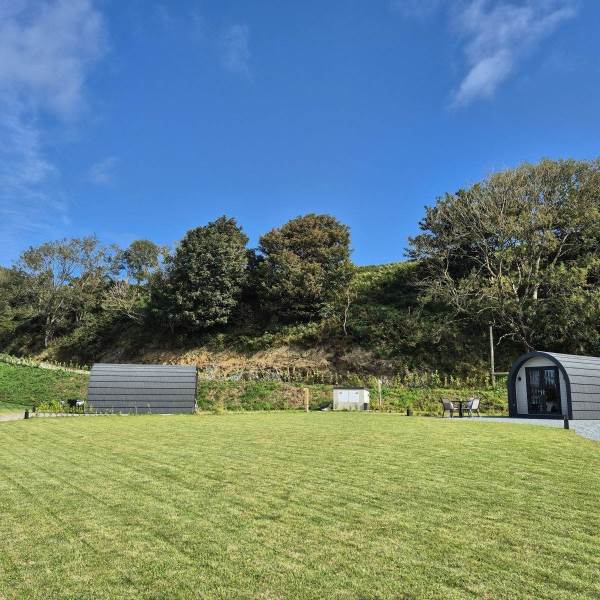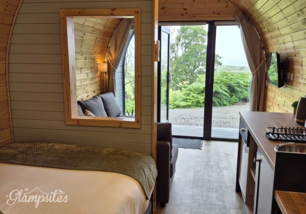 Small kitchenette with sink, fridge with ice box, kettle, toaster, microwave, cups, plates, glasses, cutlery, tea, coffee, sugar and milk