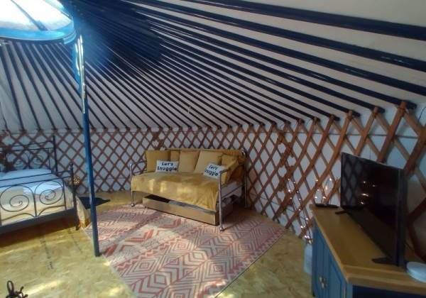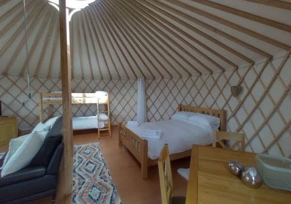 Pack your toothbrush and essentials and head west to this scenic region for family glamping holidays in Carmarthenshire’s unspoilt scenery. Why haul heavy camping equipment when you can book one of our luxury glamping sites in Carmarthenshire? Arrive to find your pre-erected glamping safari tent accommodation in Carmarthenshire’s Teifi Valley complete with double bed, three singles, electric points, camp kitchen with fridge and gas cooker ready and waiting when you arrive. Yurts and large glamping pods in Carmarthenshire are ideal for family glamping and dog-friendly glamping breaks in this beautiful area of West Wales.