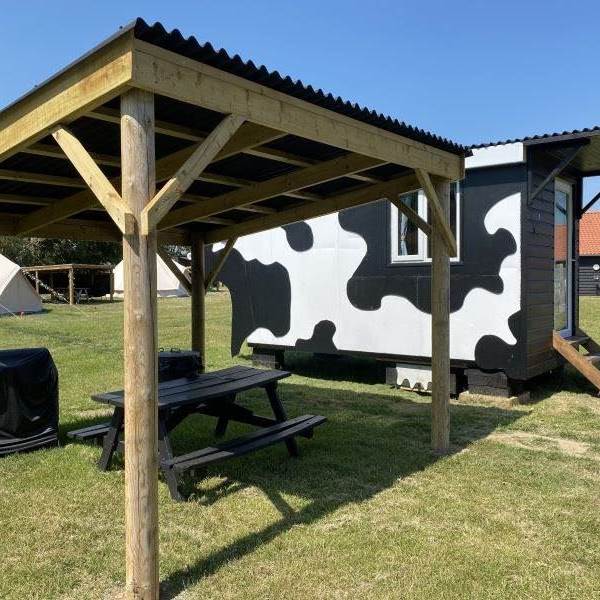 Our Betsy cow-shaped shed in the Suffolk countryside sleeps up to 4 guests comes equipped with proper beds and bedding provided. Admission to our nearby farm park, which has ponies, alpacas, and goat yoga (it's a thing), is also included.