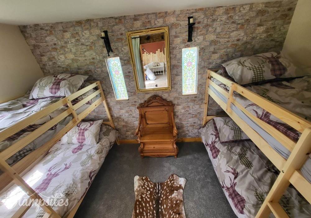 The Castle consists of 2 bedrooms. One with a king-size bed and a second bedroom which can sleep up to 4 (2 sets of bunk beds) All bedding and linen is provided.