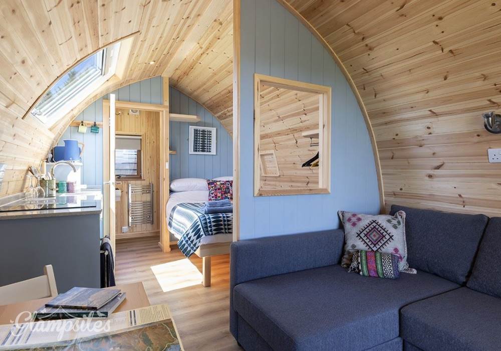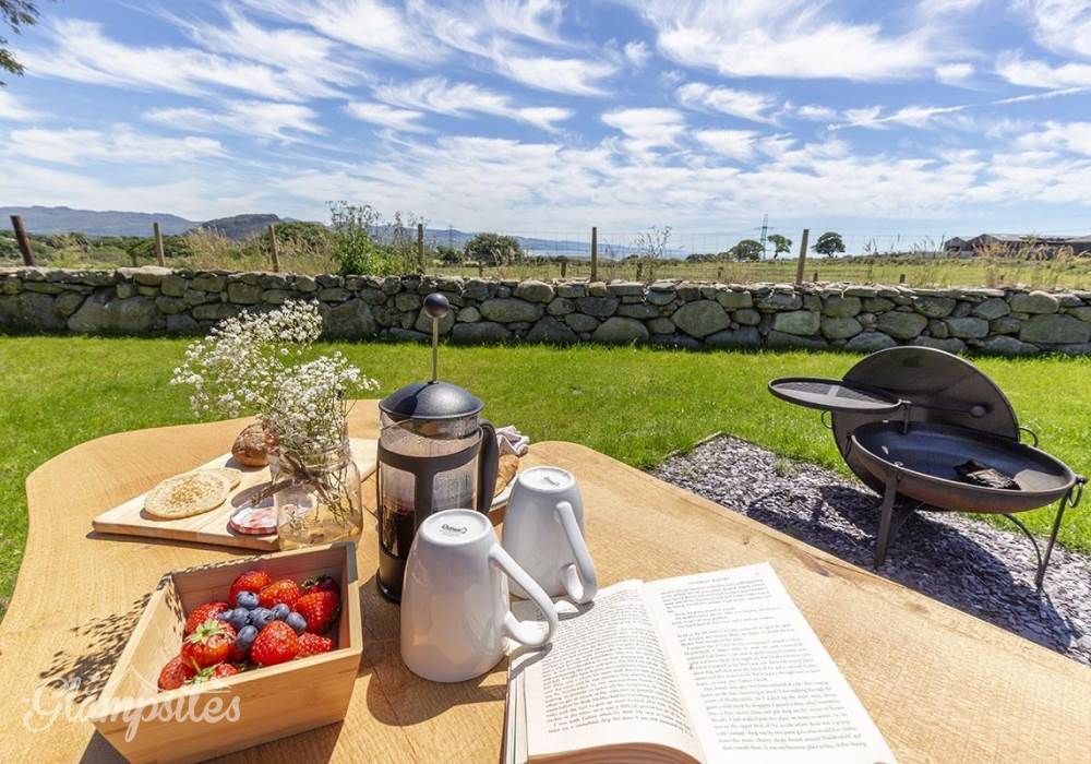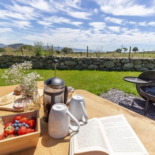 The pod also has its own outdoor space with a firepit/BBQ and a table and bench, perfect for enjoying the evenings savouring the breath-taking views, absorbing the sounds of the countryside and toasting marshmallows in the fire!