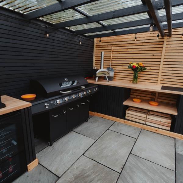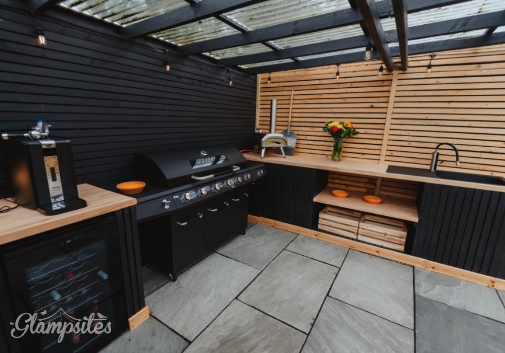 Our outdoor kitchen and cinema area is available as an add on to your Holmbyre Luxury Glamping Pod stay.
