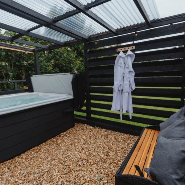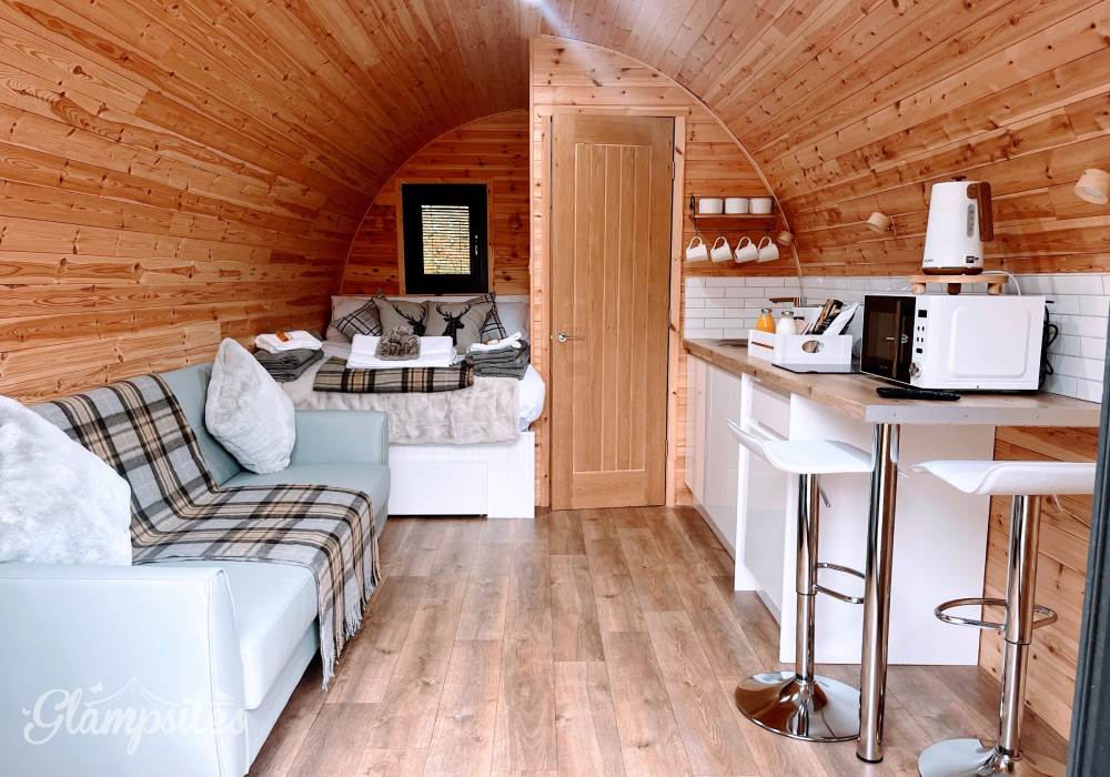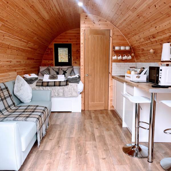 Each pod is furnished with a comfy double bed and double sofa bed, your own en-suite toilet/shower and kitchen area . Complimentary welcome hamper is also provided. Each luxury pod sleeps up to four people parking onsite and has your very own private hot tub for you to relax and enjoy!