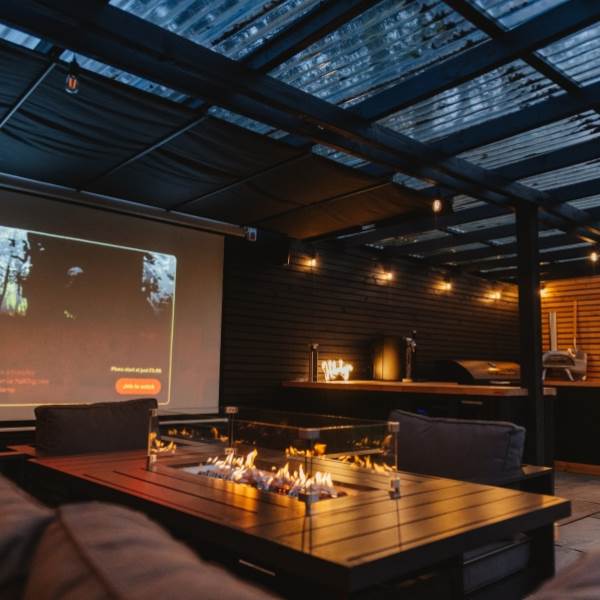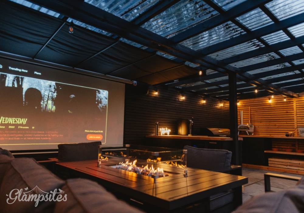Our outdoor kitchen and cinema area is available as an add on to your Holmbyre Luxury Glamping Pod stay.
