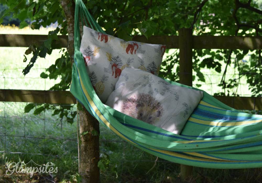 You also have a quirky converted horse trailer kitchen, fire pit patio with seating, a table with umbrella and charcoal BBQ, a hammock in the trees and even a porta potti in its own hidden tent incase you need it in the night!