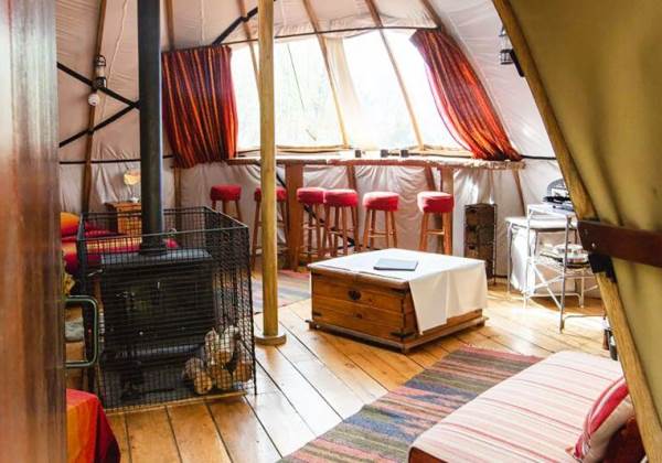 A mesmerizing structure - a perfect adventure for a family or a romantic escape for a couple. There's nothing quite like the woodburning stove at night with the flames flickering to create a warm, comfortable and relaxing atmosphere, far from the pressures of the world. Having started our glamping site with Tipis in 2003 we still consider it the most wonderful structure!