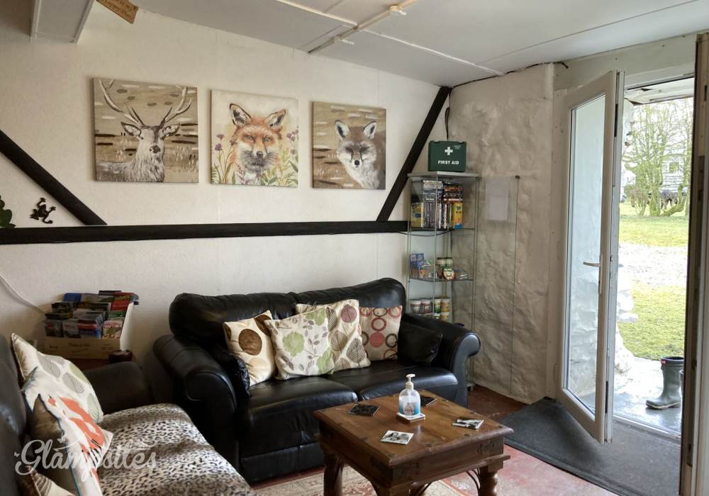 The glamping kitchen also offers dining and sitting area where you can sit and eat in comfort. The large TV in the kitchen has Freesat allowing you to sit and watch your favorite shows should the weather not be so kind in and around the pods & huts.