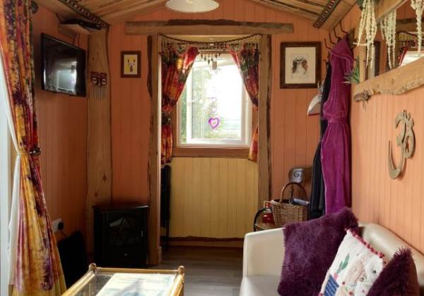 Willow sleeps 2 people (guest must be 18 years or over) and is furnished with double bed (with bedding), Freeview TV, table and chairs. For your comfort there is an electric fire to cosy up to, you will also find an abundance of rugs, cushions, blankets and a range of lighting and plug sockets.