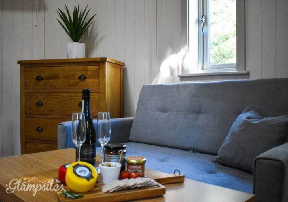 Inside your Roundhouse, you will find a double bed, complete with luxury bed linen and duvet and a double pull out sofa bed with wooden coffee table. Bedside cabinets are included in your stay, along with kitchen sideboards & wooden flooring throughout.