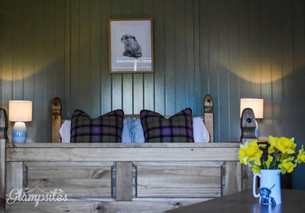 Cushions, soft furnishings & hand crafted paintings are placed throughout the accommodation and camping crockery, cutlery, kettle & glassware are all supplied. Guests can make use of a small electric convection heater with timer and an external large, private, covered decking area, with seating & cast iron BBQ.
