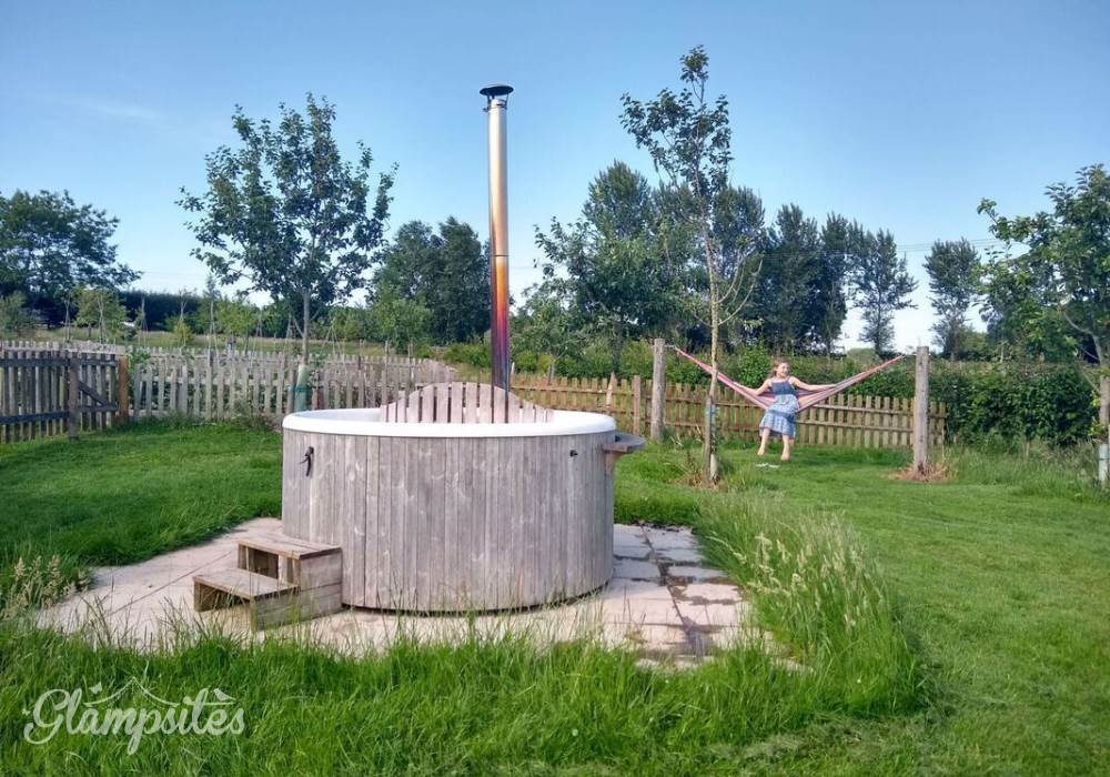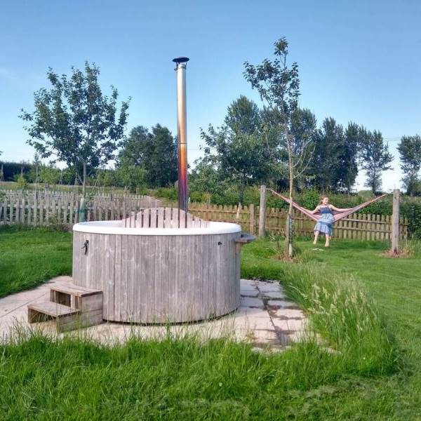 The cabin has a private fenced garden with apple trees, fairy lights, firepit/barbecue a hammock and a Swedish wood-fired hot tub - (the hot tub is an OPTIONAL EXTRA bookable direct with owners).