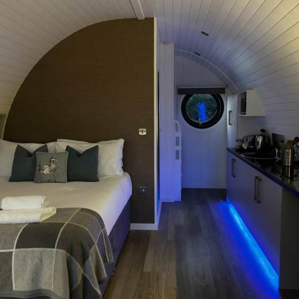 Offering more luxury than a glamping experience, the accommodation is built and furnished to a high-quality standard, creating a delightful getaway for guests. The luxury pods are self-contained, with en suite bathroom and kitchenette, and are specially-designed to be used all year round. Designated parking is also provided in the parking area central to the pods.