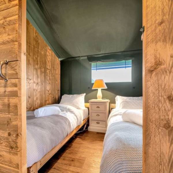 Each tent sleeps 6, comprising of 1 double room, 1 twin room (with 2 single beds) and 1 king-size cabin bed (this is accessed by a small ladder).