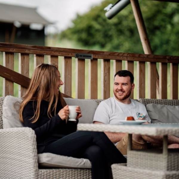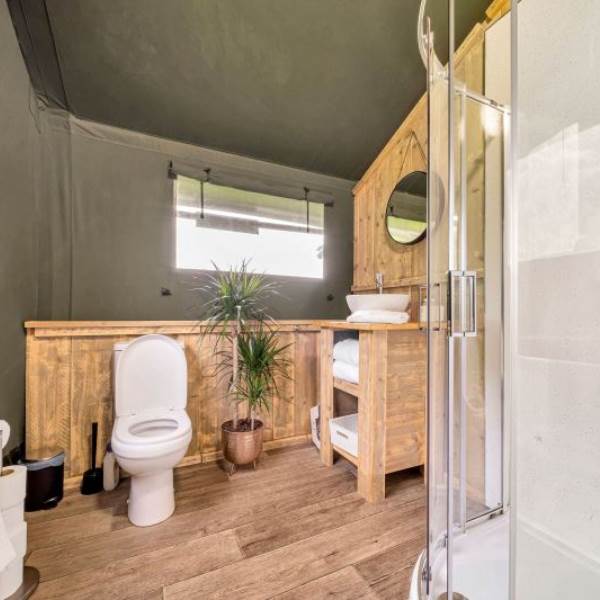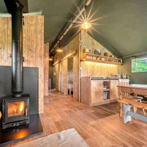Tents have everything you will need for a breakaway - towels, bedding, bathrooms with soap, shampoo, conditioner, and toilet rolls. Kitchens include 4 ring induction hob, kettle, toaster, microwave, and fridge with small icebox. All crockery and cooking items are included as well as tea towels, washing up liquid, tea, coffee, sugar, oil, salt, and pepper.