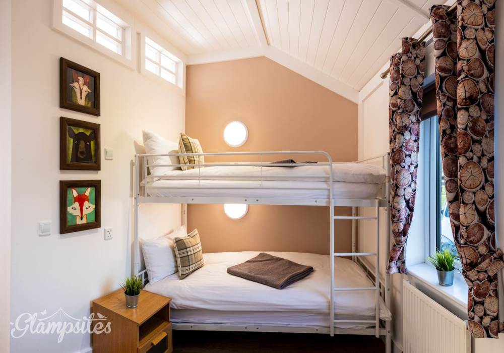 If you looking for a large space for you and your family the Montana Cabin is exactly what your looking for. With gas central heating, double glazing as standard and distinctive interior touches the Montana lodge really is a luxury escape. Sit back and relax on the huge L-shaped sofa whilst watching the kids play out of the expansive outlook doors. The high spec kitchen has everything you need to whip up your favourite feast with full sized oven, fridge and small freezer. And there’s plenty of space to enjoy your meals together too, either at the breakfast bar or 4-seater dining table. The large shower is perfect for washing your troubles away featuring a relaxing woodland backdrop designed to help you unwind after a hectic day. If you want to go one step further then this cabin has an outdoor whirlpool bathtub on the decking, perfect for stargazing at night. Once you’re ready to catch forty winks, dive under the covers in the large double bed with luxury Egyptian cotton sheets and goose down duvet, turn on the TV, relax and un-wind. The kids also get their own mini sanctuary in the bunk room which comes with their own flat screen TV and bags of storage for their favourite toys and trinkets.