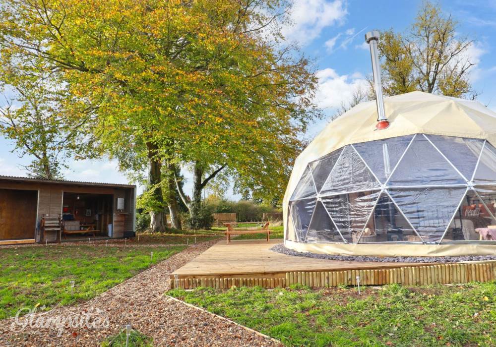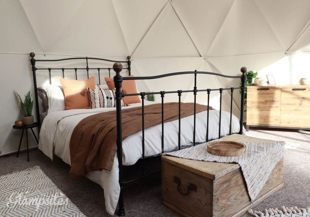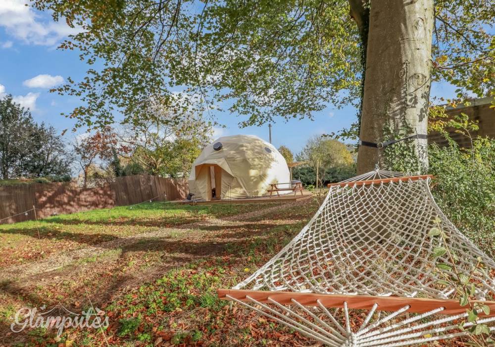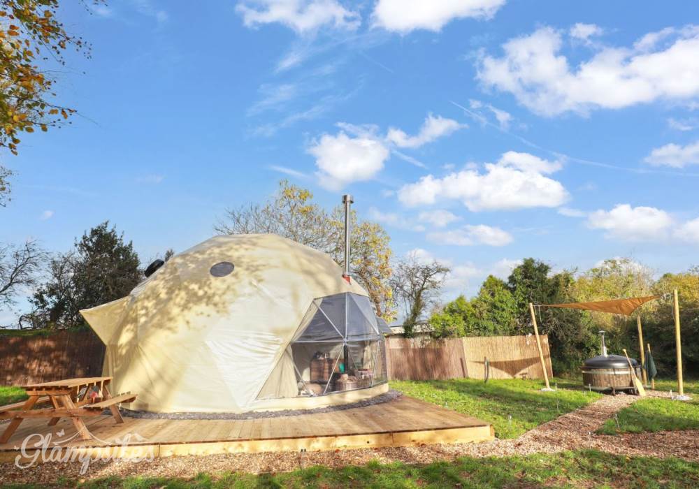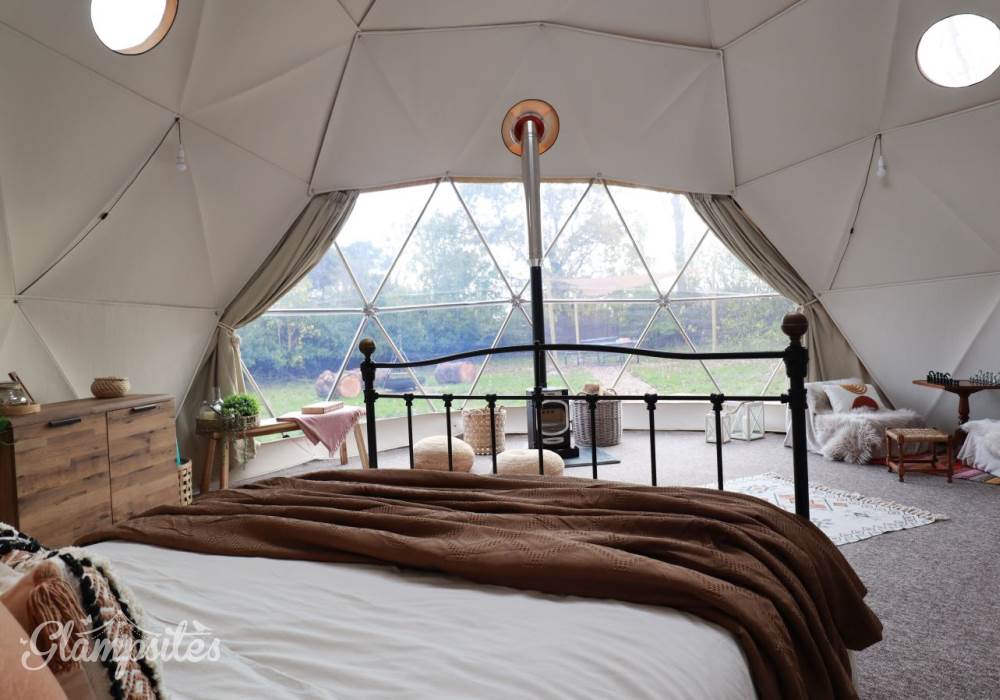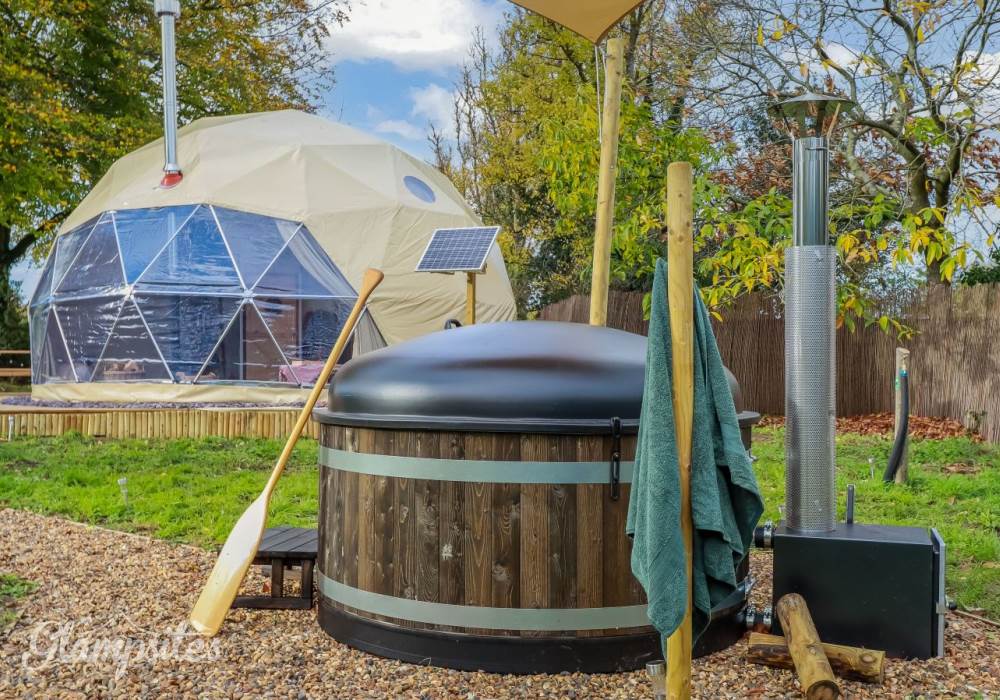 This self-contained dome has all the high-end features and lovely little extras you need for a truly romantic escape. Find yourself surrounded by nature with exclusive access to all facilities. Relax in the hot tub (building the fire is all part of the Glamping fun), enjoy a book in the hammock or why not watch a film under the stars using the projector? Get toasty around the fire-pit, or feel cosy in front of the log burner with a glass of wine or hot chocolate.