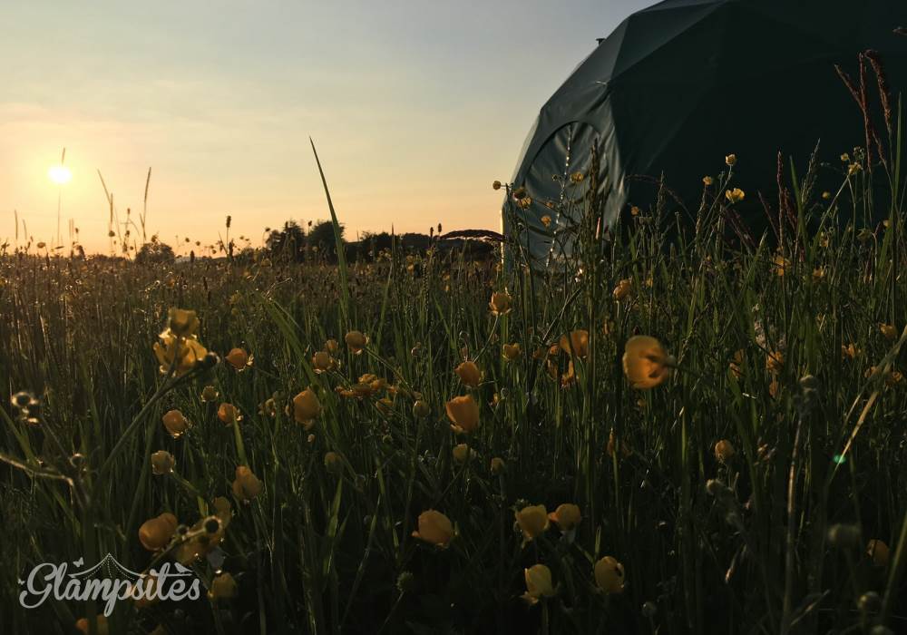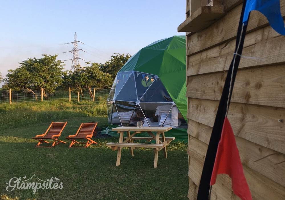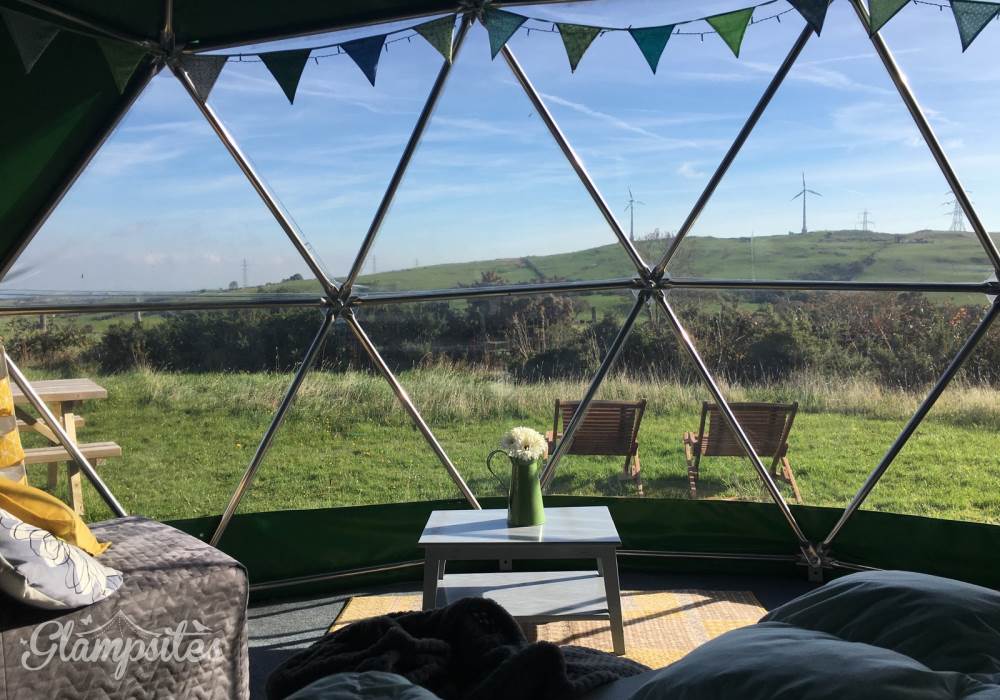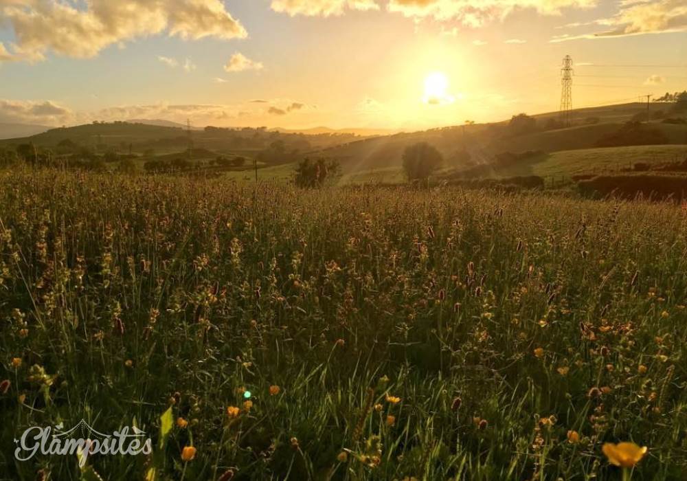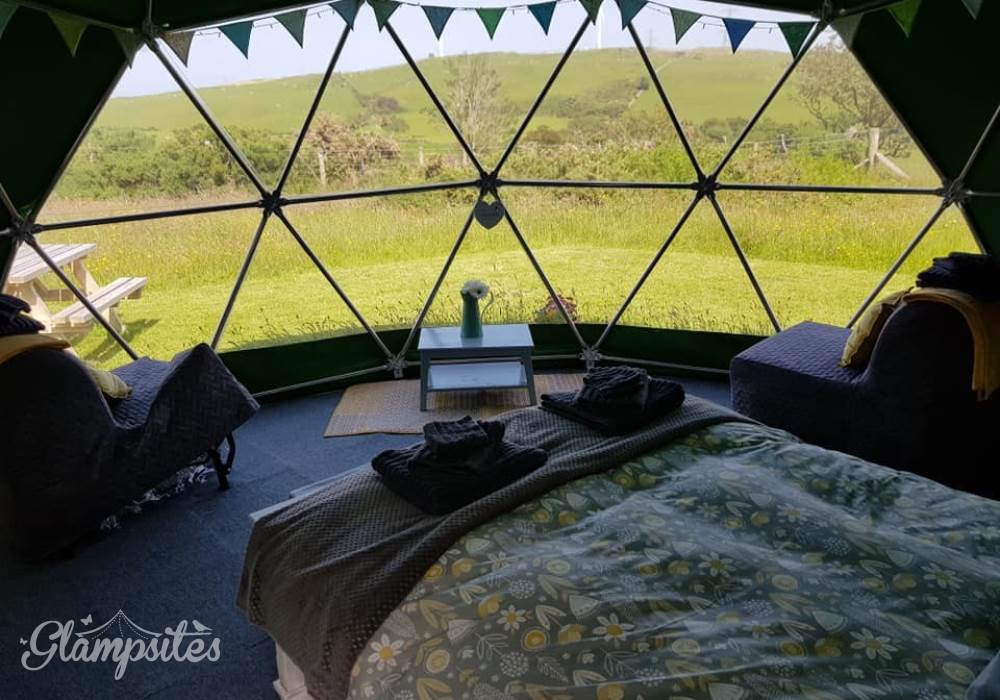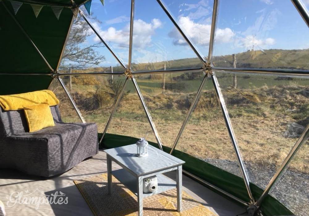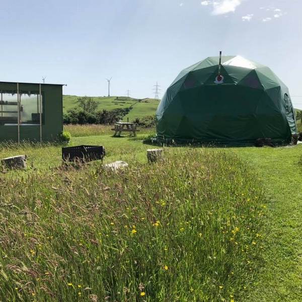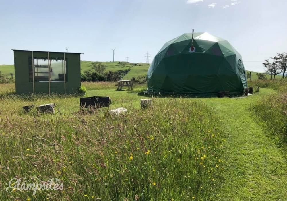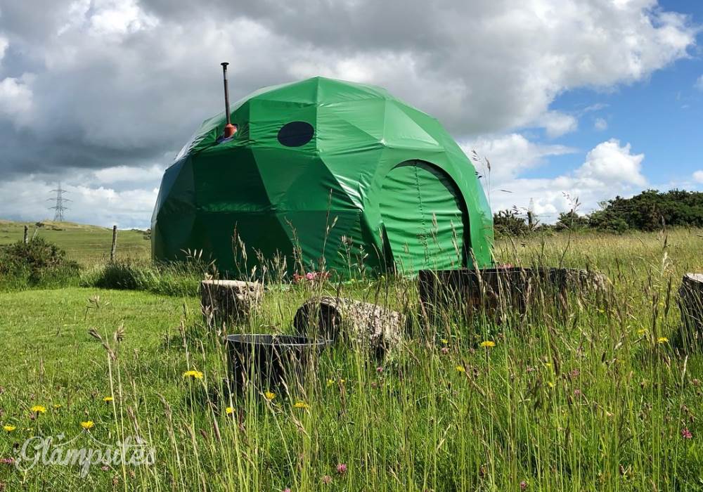 The glampsite for Dome glamping at Snowdonia National Park is nestled into our hillside meadow.